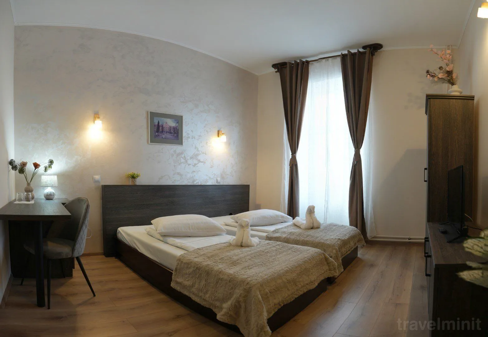 Alles was ein lieber Gast sich wünscht. Unser Hotel besteht aus 32 Zweibettzimmern und Dreibettzimmern.Wir verfügen auch 10 Luxusapartments.Das Zimmer ist ausgestattet mit Fernseher,Minibar,Badezimmer und Telephon.
