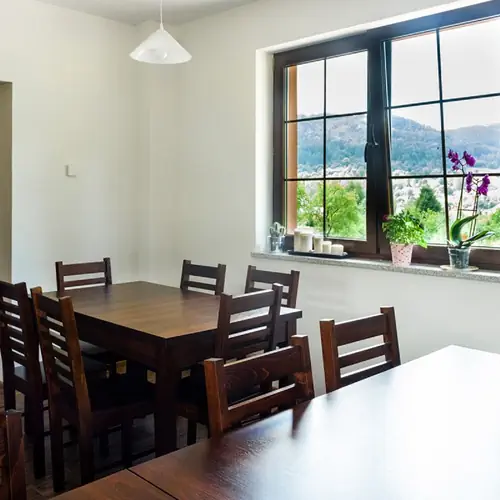 Zimmer, Dienstleistungen Mit 6 komfortablen Zimmer werden die Gäste von Pensjonat Pod Chmielarzem Wojcieszów in Wojcieszów begrüßt. Es gibt keine Einschränkungen, Ihr Lieblingstier für die Reise mitzunehmen, wodurch allerdings Zusatzkosten entstehen. Falls Sie mit Auto ankommen, können Sie es im Parkplatz der Pension lassen, wo ein kostenloser Parkplatz zur Verfügung steht. Wellnessdienstleistungen können vor Ort auch genossen werden, schauen Sie bitte das Datenblatt der Pension für die pünktliche Informationen an. Sie können gerne Ihren Laptop mitbringen, da Wi-Fi zur Verfügung steht. Bitte schauen Sie das Datenblatt von Pensjonat Pod Chmielarzem Wojcieszów an, um die komplette Liste der Dienstleistungen (ohne/mit Aufpreis) und der Ausstattung der Zimmer genau sich ansehen zu können.