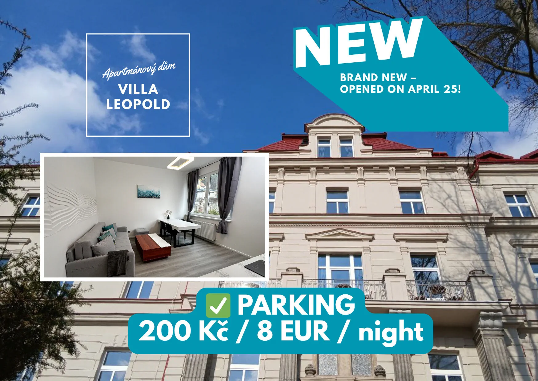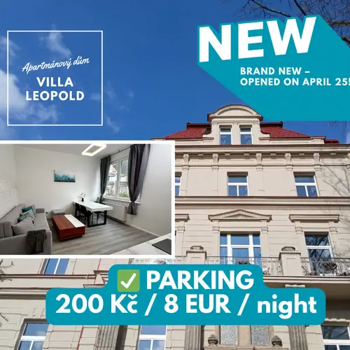 Villa Leopold – ein Apartmenthaus – bietet moderne und komfortable Unterkünfte in einer der gefragtesten Lagen von Karlsbad. Ob Sie zum Filmfestival, Skifahren am Klínovec, zum Golf oder zu den Pferderennen kommen – die Villa Leopold ist die perfekte Wahl für Ihren Aufenthalt.